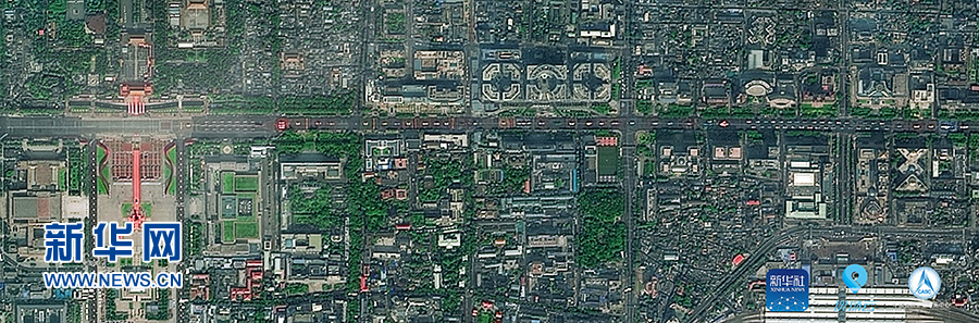 這是“高分1號”拍攝的群眾游行開始前的北京長安街(10月1日攝)。 10月1日上午,慶祝中華人民共和國成立70周年大會在北京天安門廣場隆重舉行。新華社聯合多家單位調用多顆國產衛星俯瞰閱兵,從“最高機位”發回這三張珍貴的長安街全畫幅衛星圖。 新華社發(中國資源衛星應用中心提供)