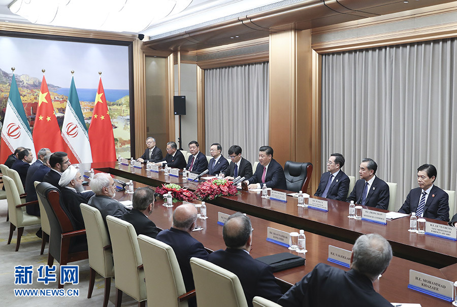 習近平歡迎魯哈尼訪華并出席上海合作組織青島峰會。習近平指出,我2016年對伊朗進行國事訪問期間,中伊兩國宣布建立全面戰略伙伴關系。兩年多來,雙方密切合作,全面落實我和總統先生達成的共識。雙方各領域合作取得豐富成果,人文交流日益密切。中伊關系具有深入發展的潛力。中方愿同伊方一道努力,共同推動中伊全面戰略伙伴關系行穩致遠。
