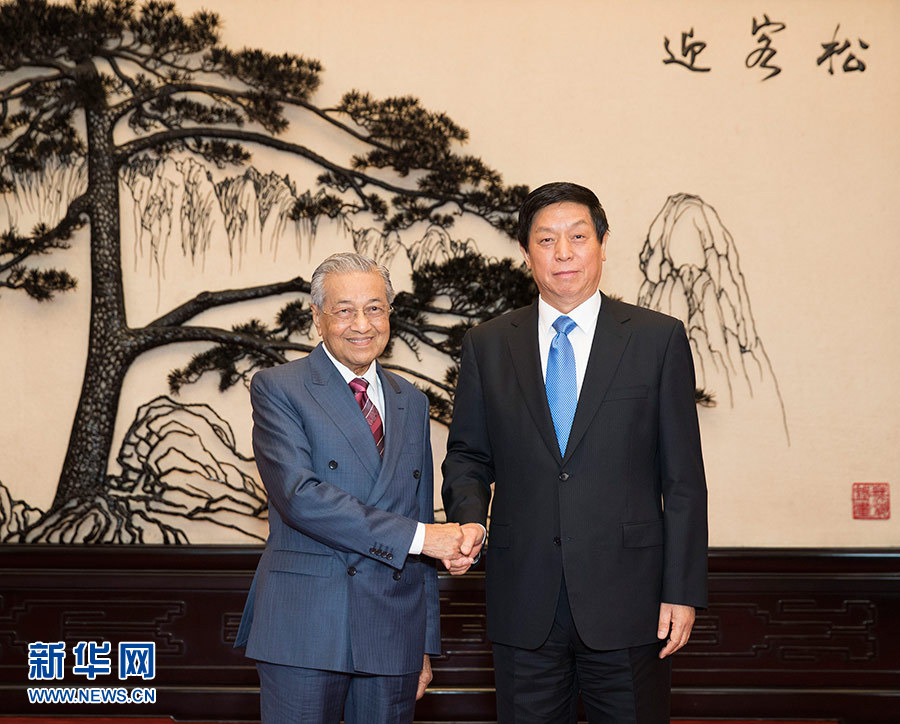 8月20日,全國人大常委會委員長栗戰書在北京人民大會堂會見馬來西亞總理馬哈蒂爾。 新華社記者 黃敬文 攝