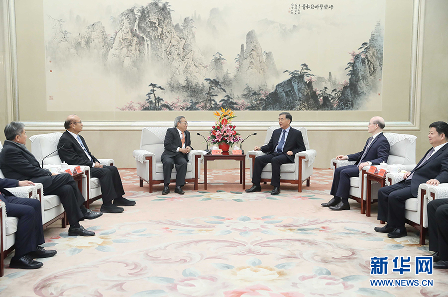 新華社北京11月6日電 中共中央政治局常委、全國政協(xié)主席汪洋6日在京會見了王文淵率領的臺灣工業(yè)總會理監(jiān)事參訪團一行。