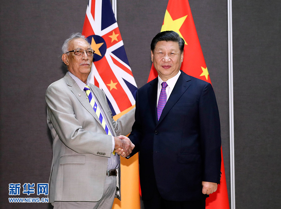 11月16日,國家主席習近平在莫爾茲比港分別會見建交太平洋島國領導人。這是習近平會見紐埃總理塔拉吉。 新華社記者 丁林 攝