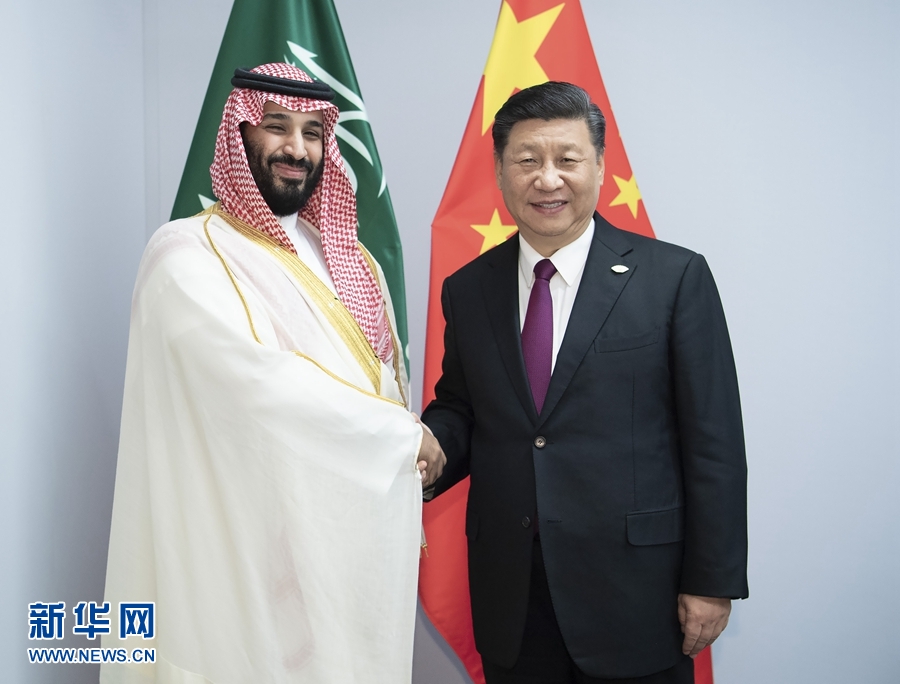當地時間11月30日,國家主席習近平在布宜諾斯艾利斯會見沙特阿拉伯王儲穆罕默德。 新華社記者 李濤 攝