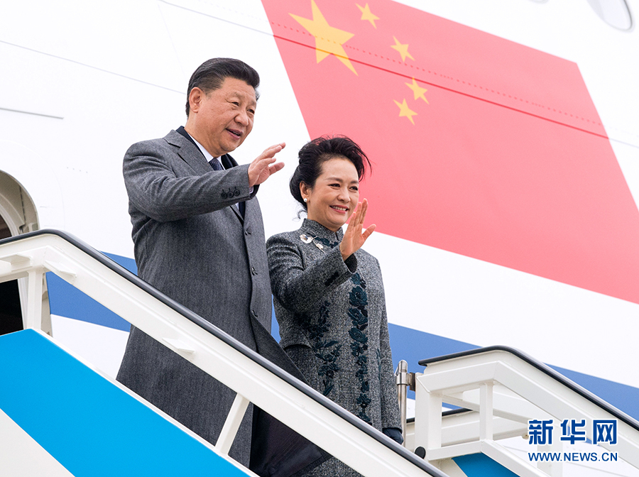 當地時間12月4日,國家主席習近平抵達里斯本,開始對葡萄牙共和國進行國事訪問。這是習近平和夫人彭麗媛步出艙門。 新華社記者李學仁攝