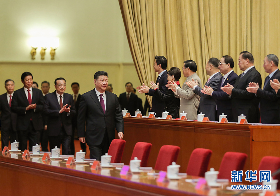 12月18日,慶祝改革開放40周年大會在北京人民大會堂隆重舉行。中共中央總書記、國家主席、中央軍委主席習近平在大會上發表重要講話。這是習近平、李克強、栗戰書、汪洋、王滬寧、趙樂際、韓正、王岐山等領導同志步入會場。 新華社記者 謝環馳 攝