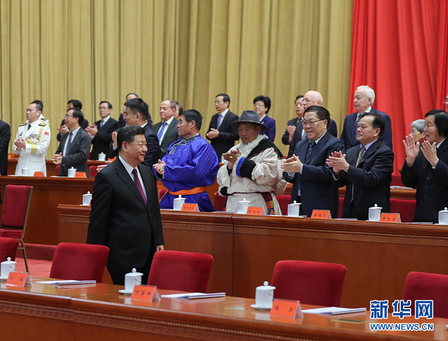 當習近平等領導同志進入會場,全場起立,熱烈鼓掌。