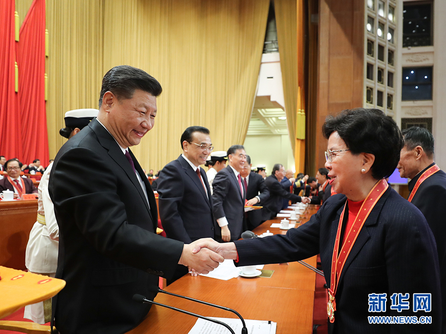 慶祝大會結束后,習近平等會見了受表彰人員及親屬代表,并同大家合影留念。