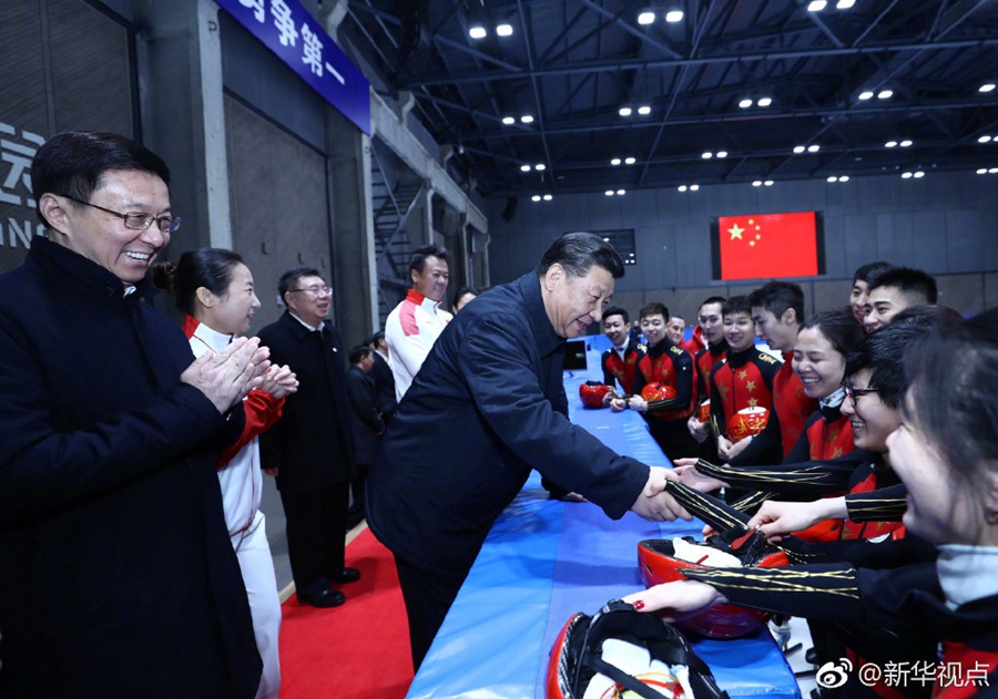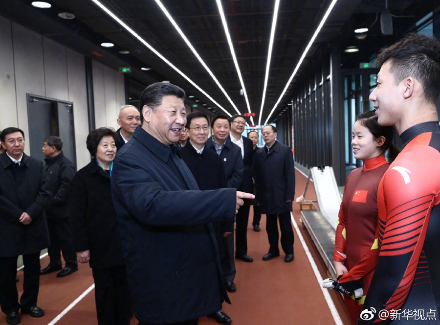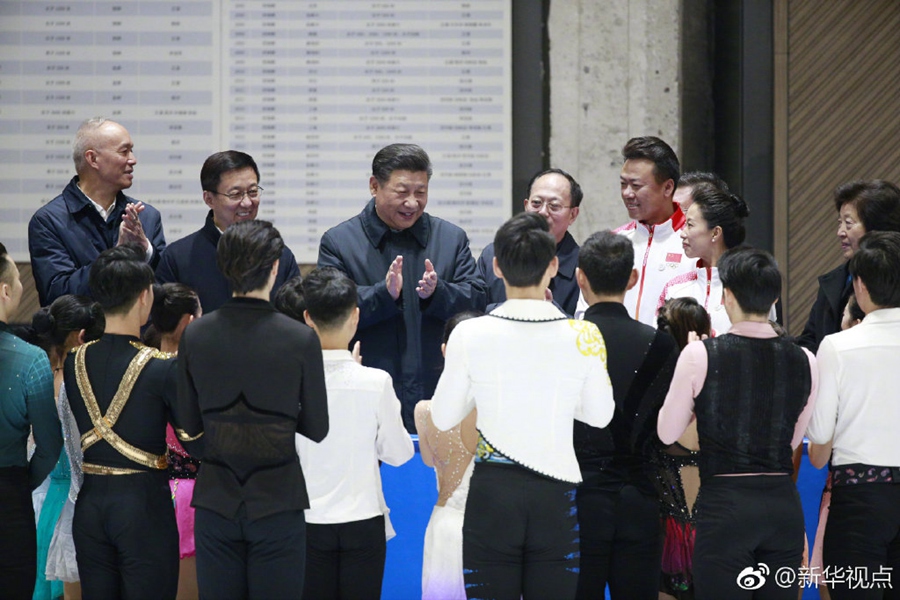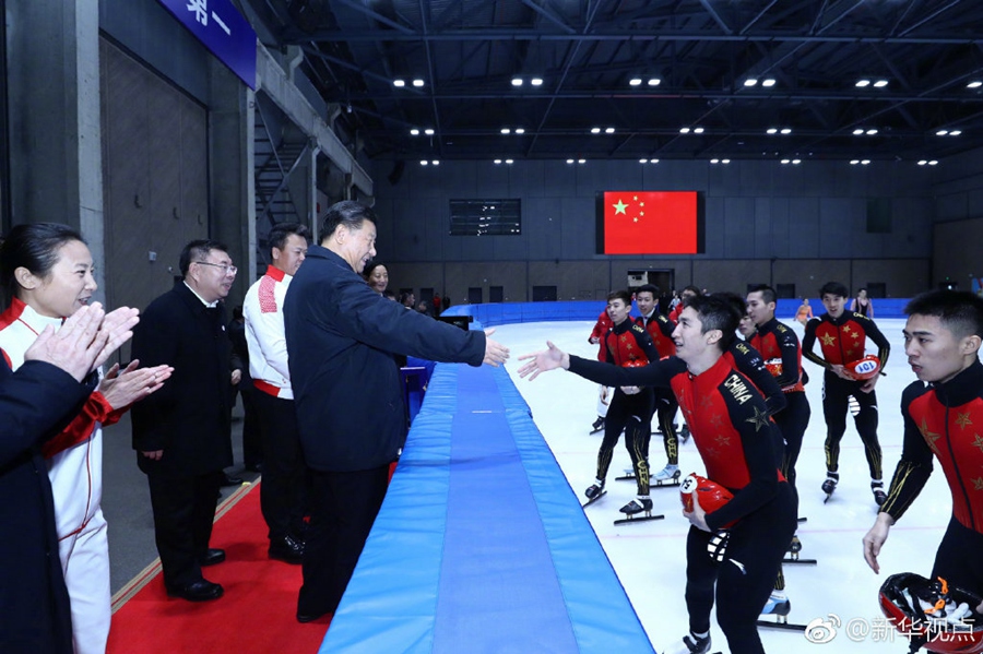 在位于北京石景山首鋼園區(qū)的國(guó)家冬季運(yùn)動(dòng)訓(xùn)練中心,習(xí)近平先后走進(jìn)速滑館和冰壺館,看望慰問(wèn)備戰(zhàn)的運(yùn)動(dòng)員、教練員?!坝?xùn)練強(qiáng)度大不大?”“從事這項(xiàng)運(yùn)動(dòng)多長(zhǎng)時(shí)間啦?”“生活上有哪些困難?”“國(guó)際上哪些競(jìng)爭(zhēng)對(duì)手最強(qiáng)?”總書(shū)記問(wèn)得仔細(xì)。得知運(yùn)動(dòng)員們充滿(mǎn)信心,總書(shū)記十分欣慰。他勉勵(lì)大家說(shuō),舉辦北京冬奧會(huì)、冬殘奧會(huì),中國(guó)冰雪運(yùn)動(dòng)將會(huì)上一個(gè)大臺(tái)階。這是百年不遇的歷史機(jī)遇,會(huì)應(yīng)運(yùn)而生一批高水平優(yōu)秀運(yùn)動(dòng)員。習(xí)近平強(qiáng)調(diào),體育強(qiáng)則國(guó)家強(qiáng),國(guó)家強(qiáng)則體育強(qiáng)。通過(guò)北京冬奧會(huì)把我國(guó)冬季冰雪運(yùn)動(dòng)發(fā)展起來(lái),這就是我們的希望。(記者張曉松、鞠鵬、謝環(huán)馳、劉彬)?