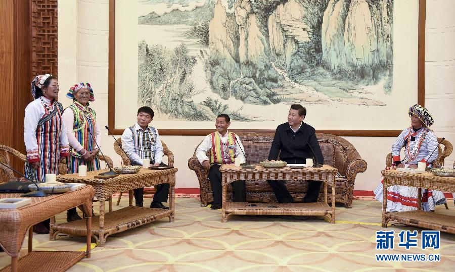 2015年1月20日,習近平在昆明親切會見怒江州貢山獨龍族怒族自治縣干部群眾代表