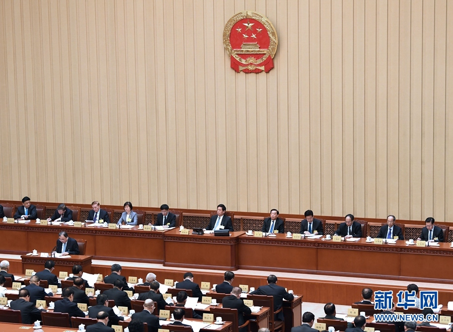 4月21日,十三屆全國人大常委會第十次會議在北京人民大會堂舉行第二次全體會議。栗戰(zhàn)書委員長出席。 新華社記者 饒愛民 攝