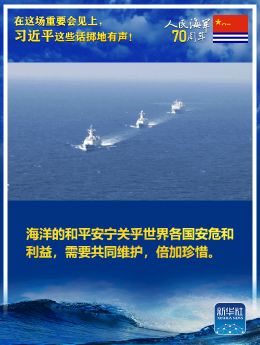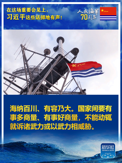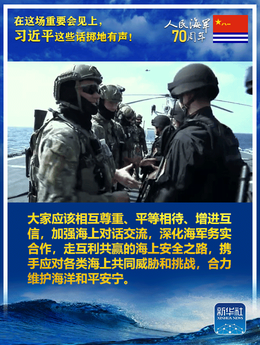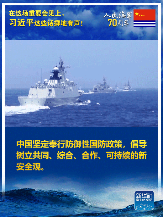 國家主席、中央軍委主席習近平23日上午在青島集體會見了應邀出席中國人民解放軍海軍成立70周年多國海軍活動的外方代表團團長,代表中國政府和軍隊向出席活動的各國海軍官兵表示熱烈歡迎。