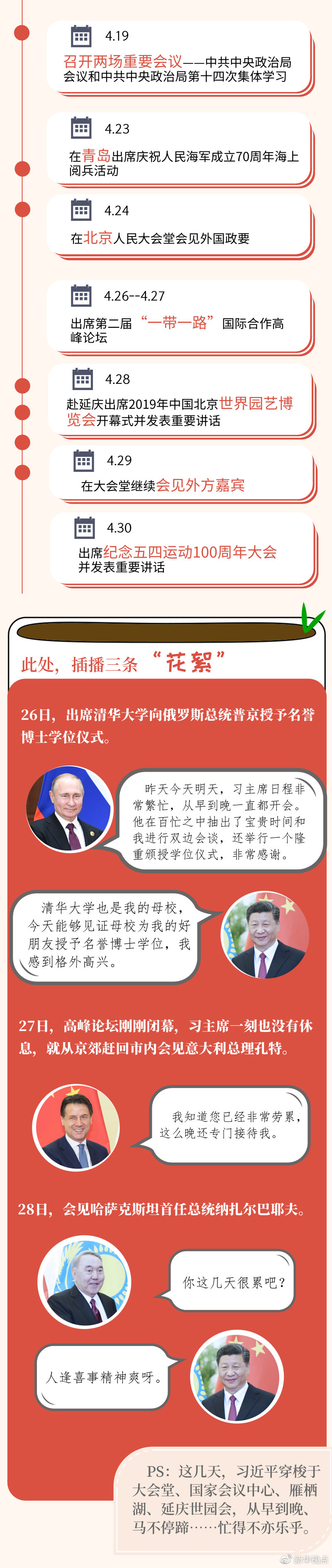 4月,一組數據淋漓盡致展現了習近平的“忙碌”: