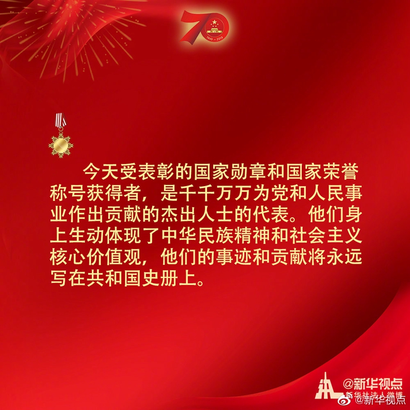 習(xí)近平在國家勛章和國家榮譽稱號頒授儀式上的重要講話金句↓ ????