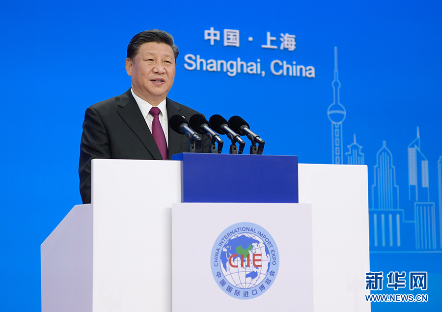 2018年11月5日,習近平在上海出席首屆中國國際進口博覽會開幕式并發表題為《共建創新包容的開放型世界經濟》的主旨演講。新華社記者 李學仁 攝
