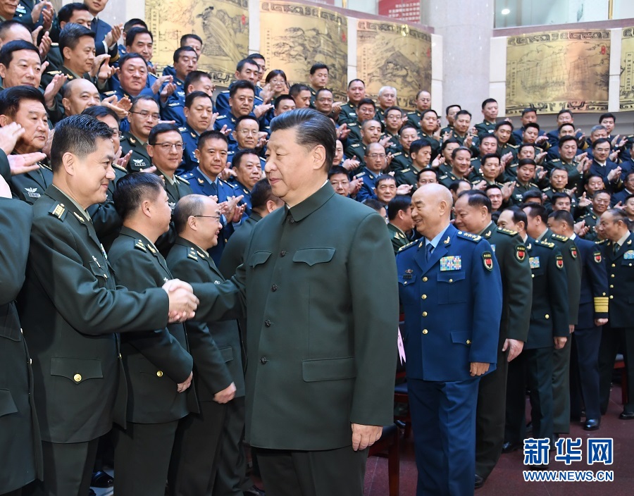 11月27日上午,全軍院校長(zhǎng)集訓(xùn)在國(guó)防大學(xué)開(kāi)班。中共中央總書(shū)記、國(guó)家主席、中央軍委主席習(xí)近平出席開(kāi)班式并發(fā)表重要講話,代表黨中央和中央軍委,向全軍院校長(zhǎng)和軍事教育戰(zhàn)線的同志們致以誠(chéng)摯問(wèn)候。這是習(xí)近平親切接見(jiàn)集訓(xùn)班全體學(xué)員。 新華社記者 李剛 攝