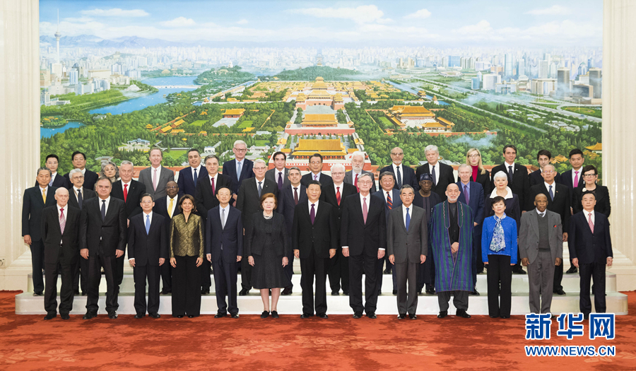 會見前,習近平同外方嘉賓集體合影。