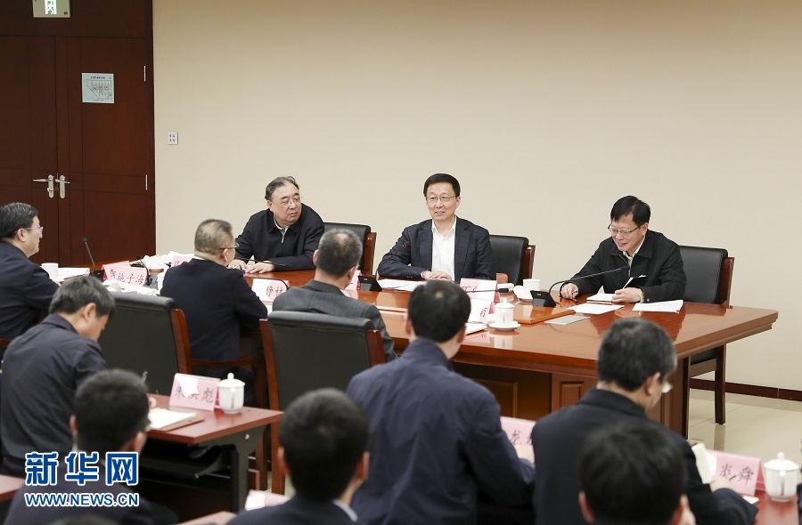 1月9日,中共中央政治局常委、國(guó)務(wù)院副總理韓正在國(guó)家醫(yī)療保障局召開(kāi)座談會(huì)。 新華社記者 丁海濤 攝