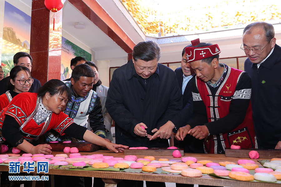 1月19日至21日,中共中央總書記、國家主席、中央軍委主席習(xí)近平來到云南,看望慰問各族干部群眾,向全國人民致以新春祝福。這是19日下午,習(xí)近平在騰沖市清水鄉(xiāng)三家村中寨司莫拉佤族村,同村民李發(fā)順一家制作當(dāng)?shù)毓?jié)日傳統(tǒng)食品大米粑粑。 新華社記者 鞠鵬 攝