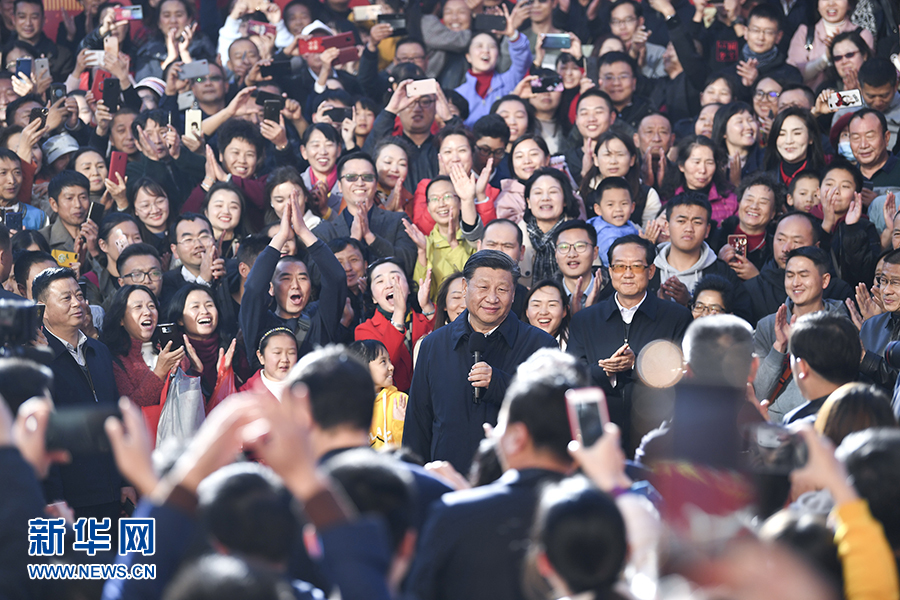 1月19日至21日,中共中央總書記、國家主席、中央軍委主席習(xí)近平來到云南,看望慰問各族干部群眾,向全國人民致以新春祝福。這是20日下午,習(xí)近平在昆明國際會展中心展廳外廣場上,向云南群眾、向全國各族人民、向港澳臺同胞和海外僑胞致以新春祝福。 新華社記者 謝環(huán)馳 攝