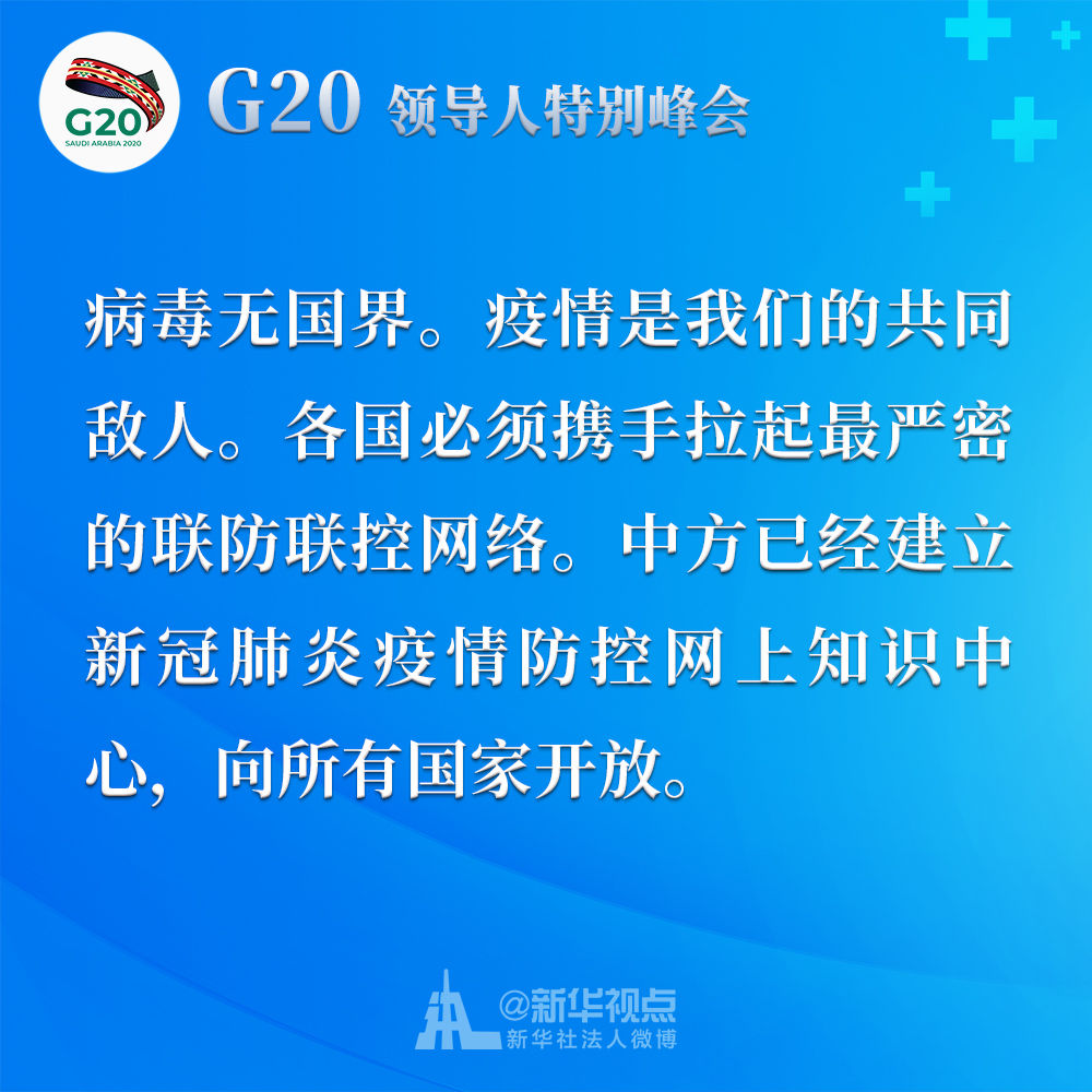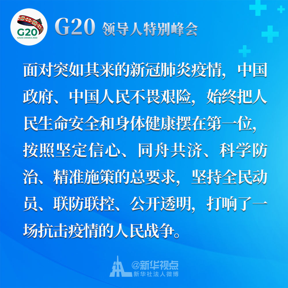 習近平在二十國集團領導人應對新冠肺炎特別峰會上重要講話金句↓