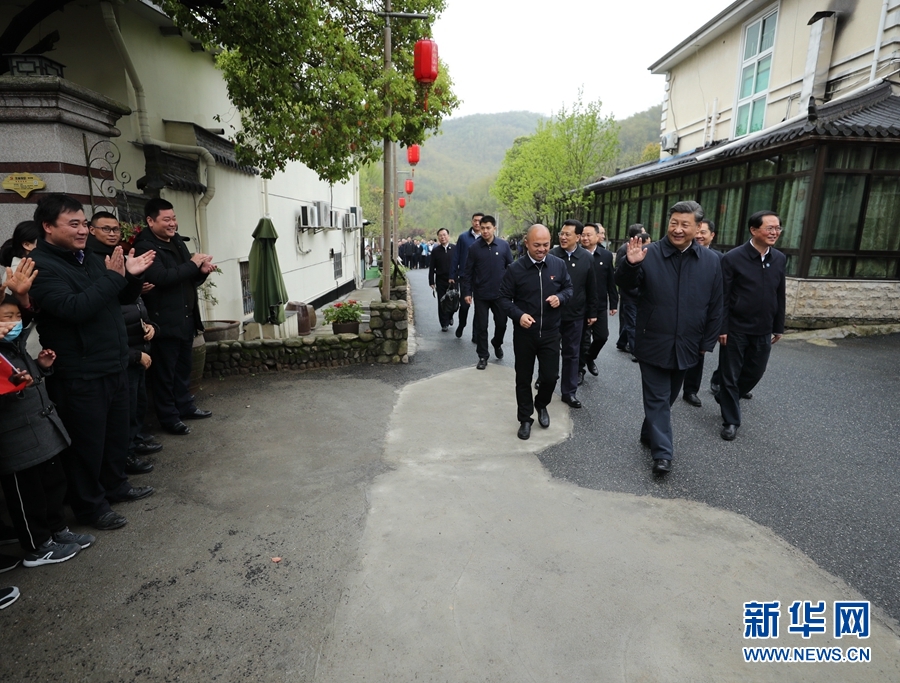 3月30日,中共中央總書記、國家主席、中央軍委主席習近平在浙江省安吉縣天荒坪鎮余村考察,了解該村多年來踐行“綠水青山就是金山銀山”理念、推動綠色發展發生的巨大變化。 新華社記者 鞠鵬 攝