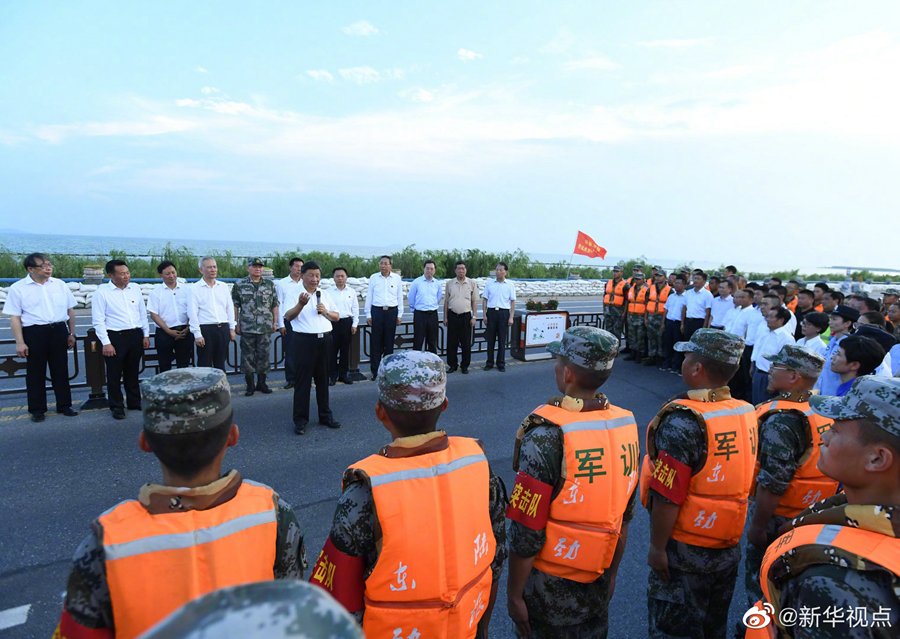 19日下午,正在安徽考察調(diào)研的習(xí)近平總書記來到合肥市肥東縣十八聯(lián)圩生態(tài)濕地蓄洪區(qū)巢湖大堤羅家疃段,察看巢湖水勢水情。他強(qiáng)調(diào),洪水退后,要防止蓄洪區(qū)內(nèi)出現(xiàn)水退人進(jìn)的現(xiàn)象。我們要實現(xiàn)人與自然和諧相處,就不能同自然爭奪發(fā)展空間。八百里巢湖要用好,更要保護(hù)好、治理好,使之成為合肥這個城市最好的名片。(文字記者:張曉松 攝影記者:鞠鵬 王曄 燕雁)