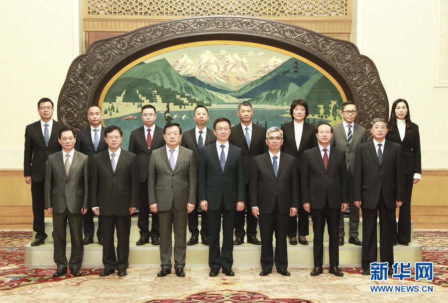 新華社北京9月16日電 16日下午,中共中央政治局常委、國務院副總理、中央港澳工作領導小組組長韓正在人民大會堂會見了澳門特別行政區保安司司長黃少澤率領的澳門紀律部隊高層代表團,與他們交流并合影留念。