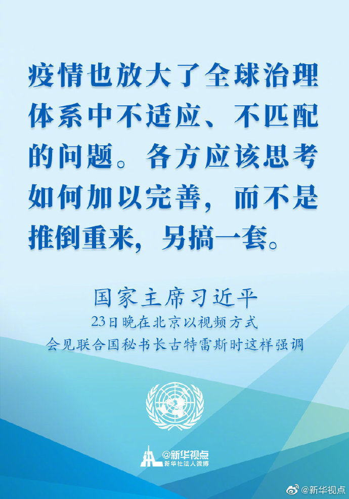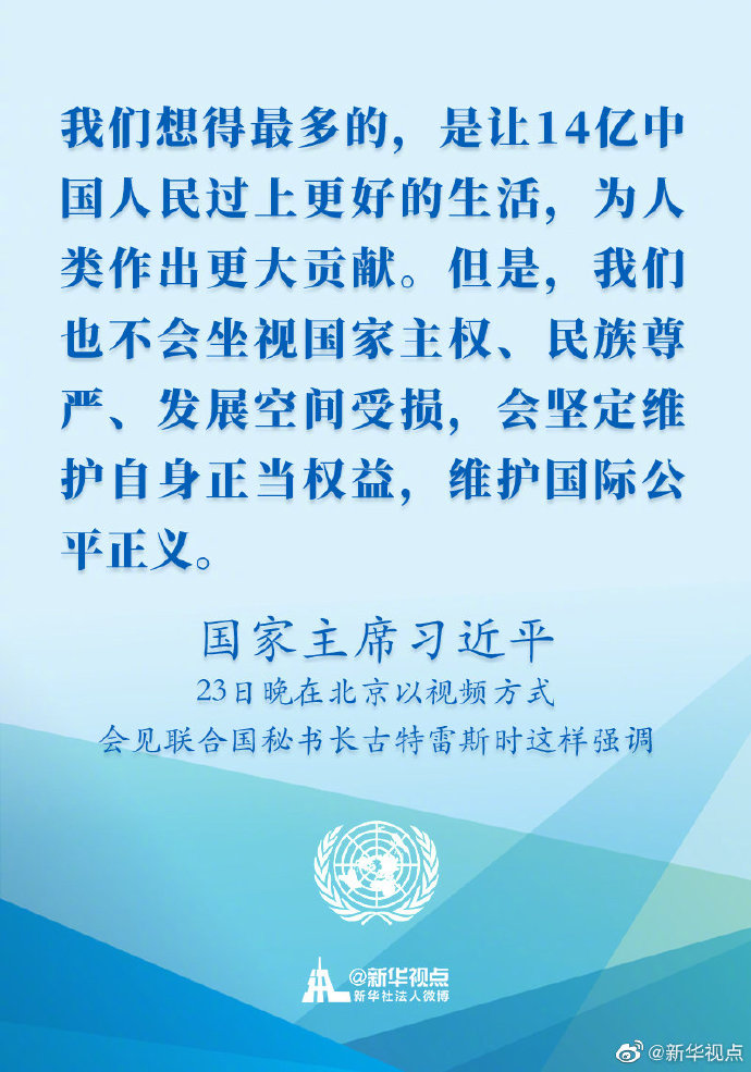國家主席習(xí)近平23日晚在北京以視頻方式會見聯(lián)合國秘書長古特雷斯時講話的金句