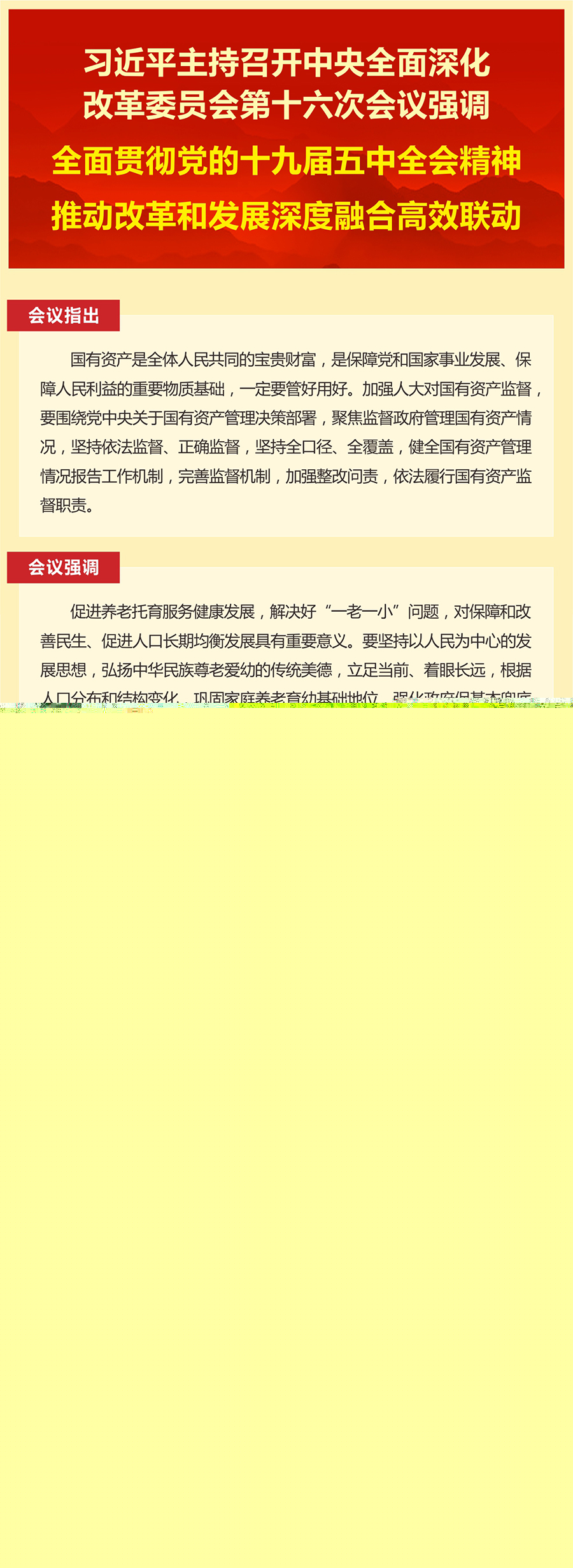 新華社北京11月2日電? 中共中央總書記、國家主席、中央軍委主席、中央全面深化改革委員會主任習近平11月2日下午主持召開中央全面深化改革委員會第十六次會議并發表重要講話。他強調,“十三五”以來,全面深化改革取得重大突破。“十四五”時期我國將進入新發展階段,改革又到了一個新的關頭。貫徹黨的十九屆五中全會精神,要繼續把握好改革和發展的內在聯系,深刻認識我國社會主要矛盾變化帶來的新特征新要求,深刻認識錯綜復雜國際環境帶來的新矛盾新挑戰,深刻認識全面深化改革的階段性新特點新任務,緊扣貫徹新發展理念、推進高質量發展、構建新發展格局,緊盯解決突出問題,提高改革的戰略性、前瞻性、針對性,使改革更好對接發展所需、基層所盼、民心所向,推動改革和發展深度融合、高效聯動。