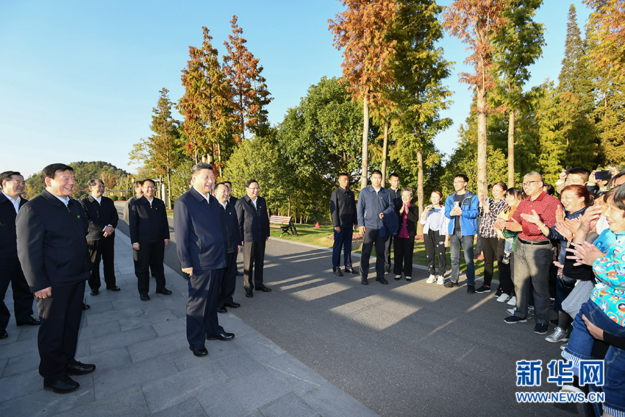 11月12日至13日,中共中央總書記、國家主席、中央軍委主席習近平在江蘇考察。這是12日下午,習近平在南通市五山地區濱江片區考察時,同市民群眾親切交流。 新華社記者 謝環馳 攝