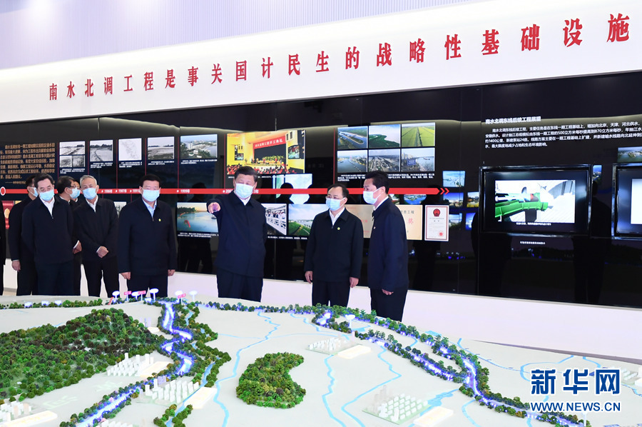 一個大型沙盤模型直觀地呈現了中國大地上水資源大范圍大規模跨區域調配的壯闊景象,習近平總書記駐足凝望——