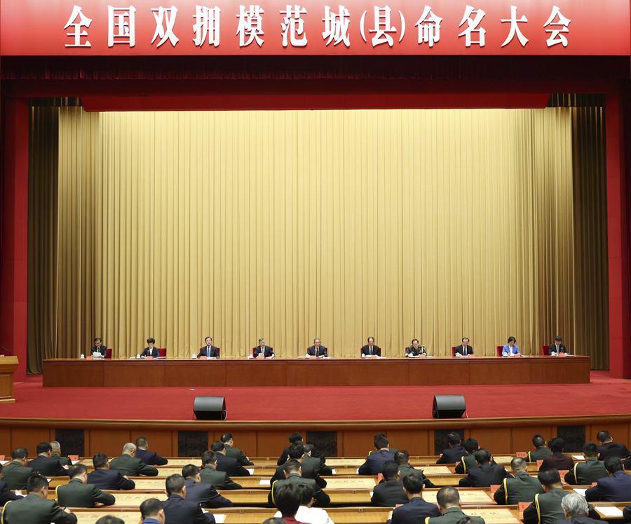 大会宣读了关于命名全国双拥模范城(县)的决定,并为全国双拥模范城(县)代表颁奖。有关军地代表作了发言。