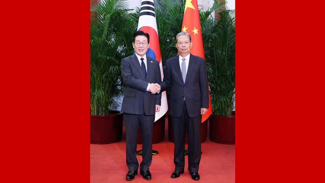 赵乐际会见韩国总统李在明