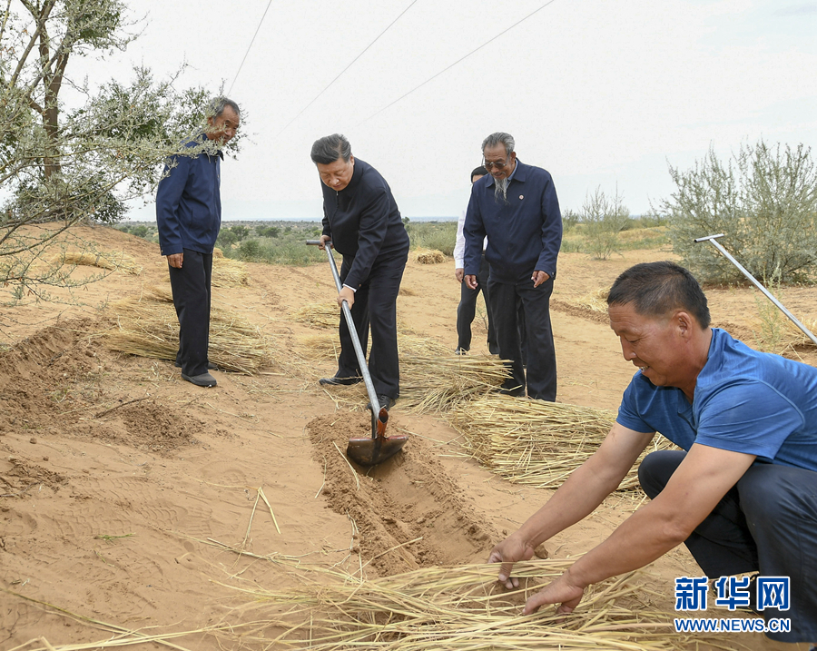 8月21日,中共中央總書記、國家主席、中央軍委主席習近平繼續在甘肅考察。這是習近平來到武威市古浪縣八步沙林場,實地察看當地治沙造林、生態保護等情況。 新華社記者 謝環馳 攝