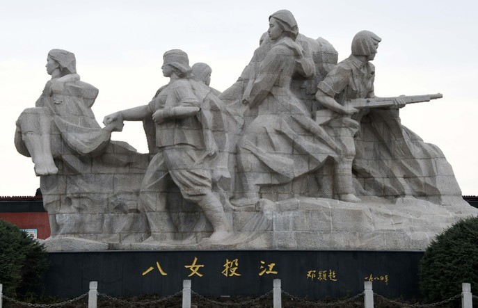 她們是東北抗日聯軍第5軍婦女團的政治指導員冷云,班長胡秀芝、楊貴珍,戰士郭桂琴、黃桂清、王惠民、李鳳善和被服廠廠長安順福。1938年10月,該部在牡丹江地區烏斯渾河渡口與日偽軍千余人遭遇。已行至河邊準備渡河的婦女團8名成員,為掩護大部隊突圍,毅然放棄渡河,在冷云率領下,分成3個戰斗小組,與日偽軍展開激戰。她們主動吸引日偽軍火力,使部隊主力得以迅速擺脫敵人的攻擊,但她們卻被敵人圍困于河邊。在背水作戰至彈盡的情況下,面對日偽軍逼降,女戰士們誓死不屈。她們毀掉槍支,挽臂涉入烏斯渾河,高唱著《國際歌》,集體沉江,壯烈殉國。犧牲時,她們年齡最大的冷云23歲,最小的王惠民才13歲。