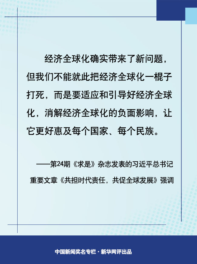 有問題不可怕,可怕的是不敢直面問題,找不到解決問題的思路。面對經(jīng)濟全球化帶來的機遇和挑戰(zhàn),世界各國要主動作為、適度管理,讓經(jīng)濟全球化的正面效應(yīng)更多釋放出來,實現(xiàn)經(jīng)濟全球化進(jìn)程再平衡;要順應(yīng)大勢、結(jié)合國情,正確選擇融入經(jīng)濟全球化的路徑和節(jié)奏;要講求效率、注重公平,讓不同國家、不同階層、不同人群共享經(jīng)濟全球化的好處。只有把握規(guī)律、認(rèn)清大勢,共同把經(jīng)濟全球化動力搞大、阻力搞小,才能順應(yīng)各國人民對美好生活的向往,讓經(jīng)濟全球化更好惠及每個國家、每個民族。