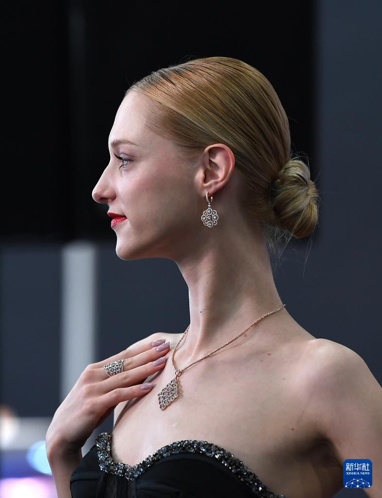 3月1日,模特在珠宝展上展示饰品。