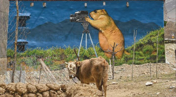 4月12日,诸暨市东白湖镇斯民小学的学生在上国画课。