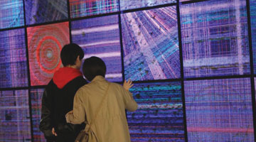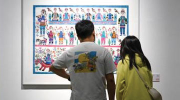 4月20日,观众在山东省美术馆展厅欣赏美术作品。