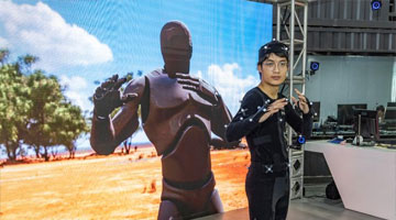 5月7日,在哈尔滨国际会展体育中心,观众在首届东北亚文化艺术创意设计博览会上参观拍照。