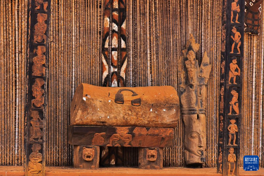 这是4月13日在喀麦隆西部大区拍摄的巴图方酋邦宫殿内的木制器物。
