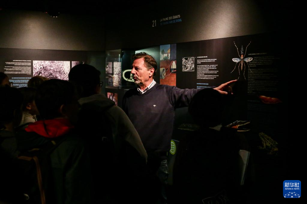 5月16日,在比利时布鲁塞尔的下水道博物馆,讲解员为大家讲述下水道中的生物知识。