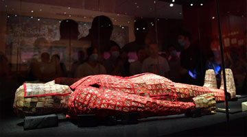 这是5月17日在黎巴嫩卜苏斯丝绸博物馆拍摄的蚕茧、蚕丝和丝织品。