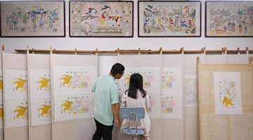 6月16日,观众参观“五星出东方利中国”锦护膊(复制品)。