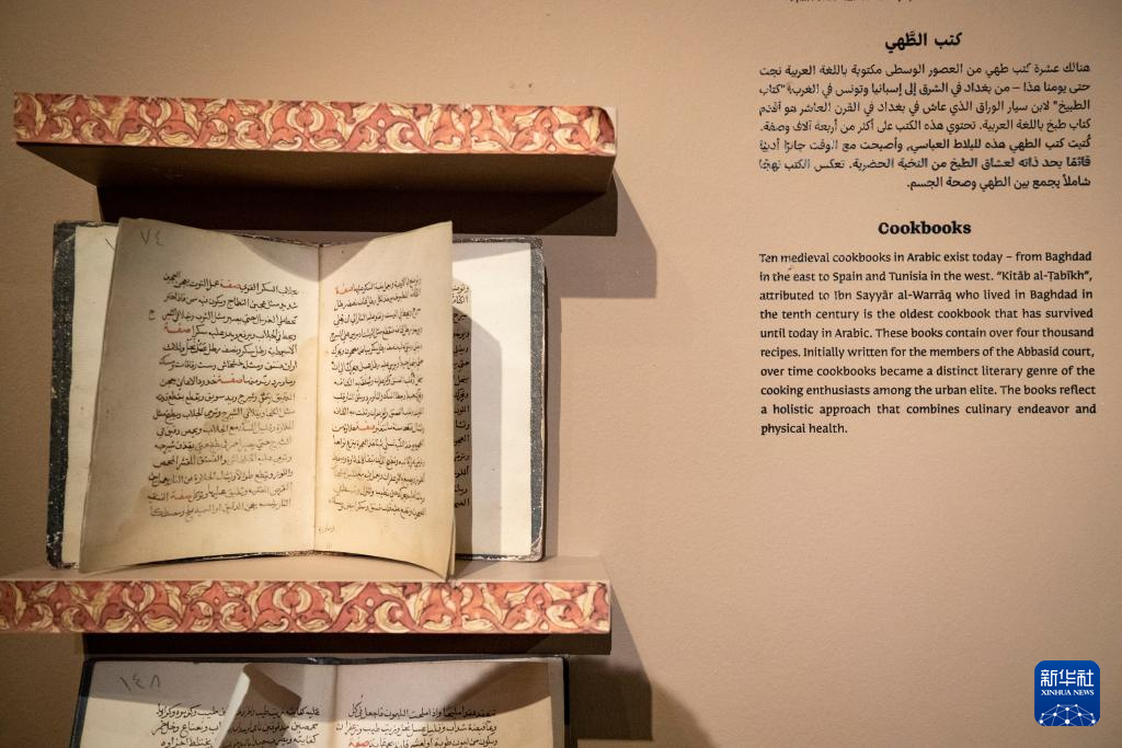 这是8月24日在耶路撒冷举行的古代阿拉伯世界饮食文化展上拍摄的古代食谱。