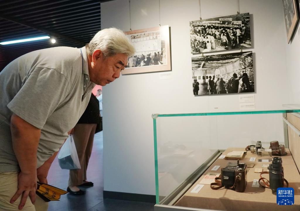9月3日,参观者在中国人民抗日战争纪念馆观看“烽烟号角——《晋察冀画报》摄影文献展”。