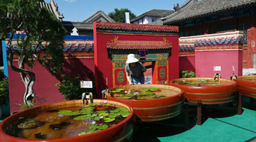 在拉萨市林周县边交林乡当杰村,观众在欣赏第十六届西藏珠穆朗玛摄影大展作品(9月8日摄)。
