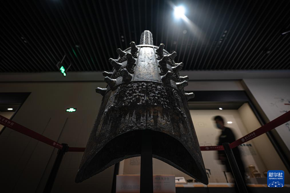 9月23日,参观者在湖北省博物馆长江文明特展上观看展出的曾侯舆甬钟。