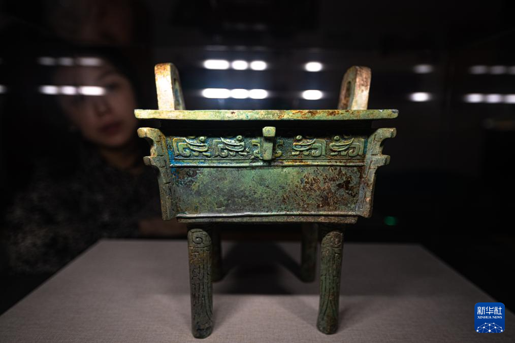 9月23日,参观者在湖北省博物馆长江文明特展上观看展出的曾侯谏铜方鼎。