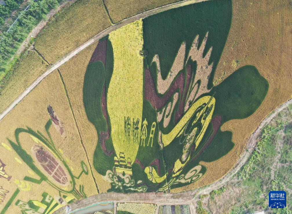 近日,河北省保定市徐水区神农现代农业示范园打造的五彩稻田画成为一道独特风景线。从空中俯瞰,一幅幅精美的稻田画在广阔的大地上铺展开来,勾勒出丰收壮美景象。