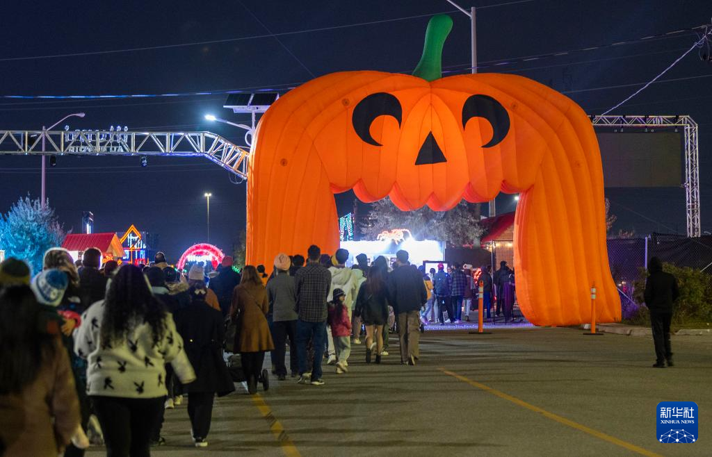 10月18日,在加拿大安大略省米西索加,人们排队进入灯展大门。